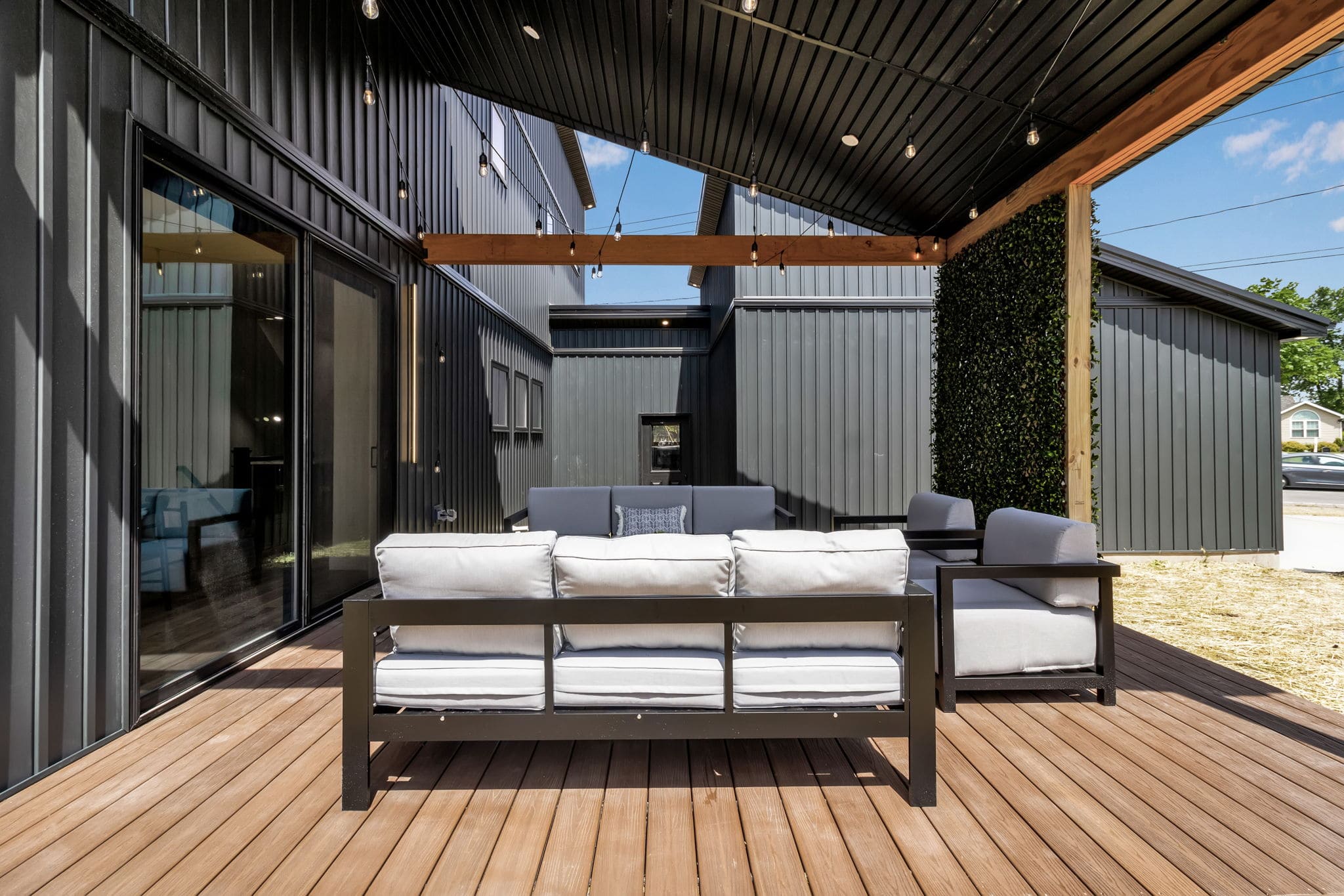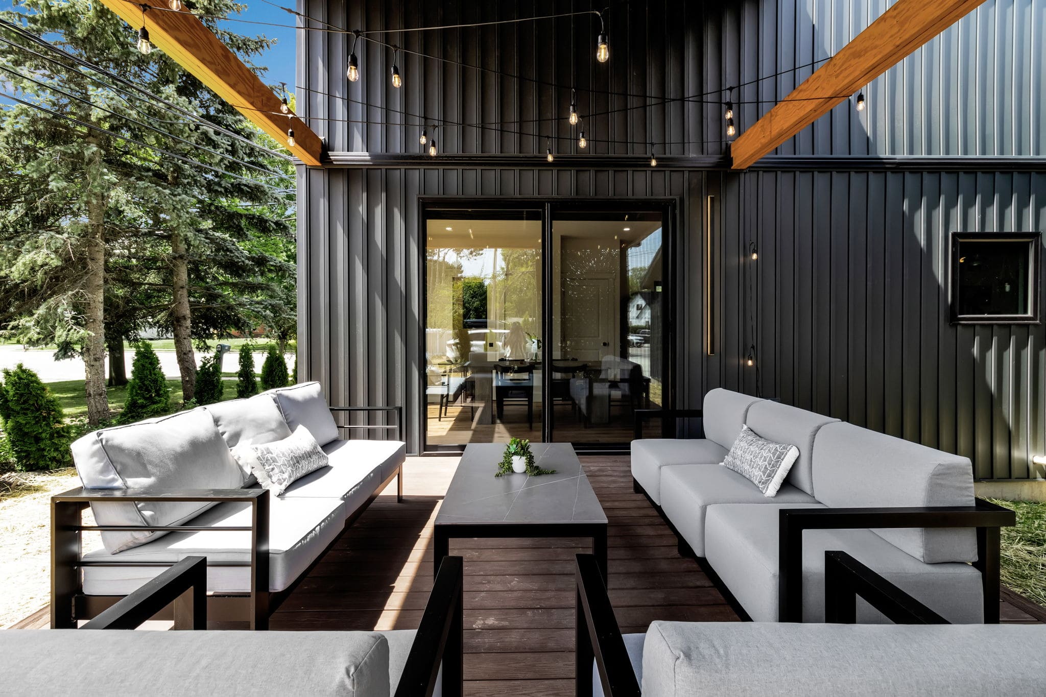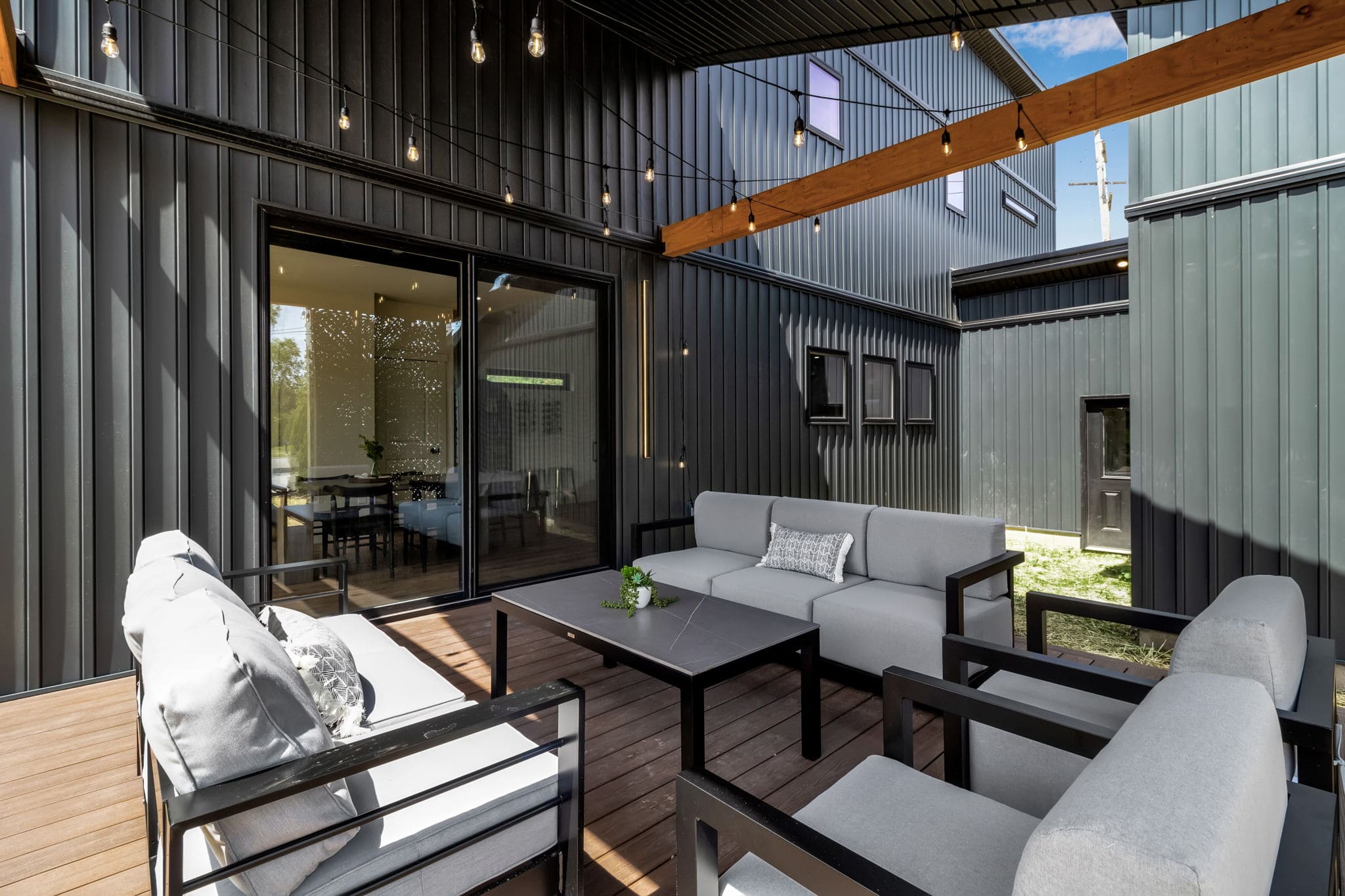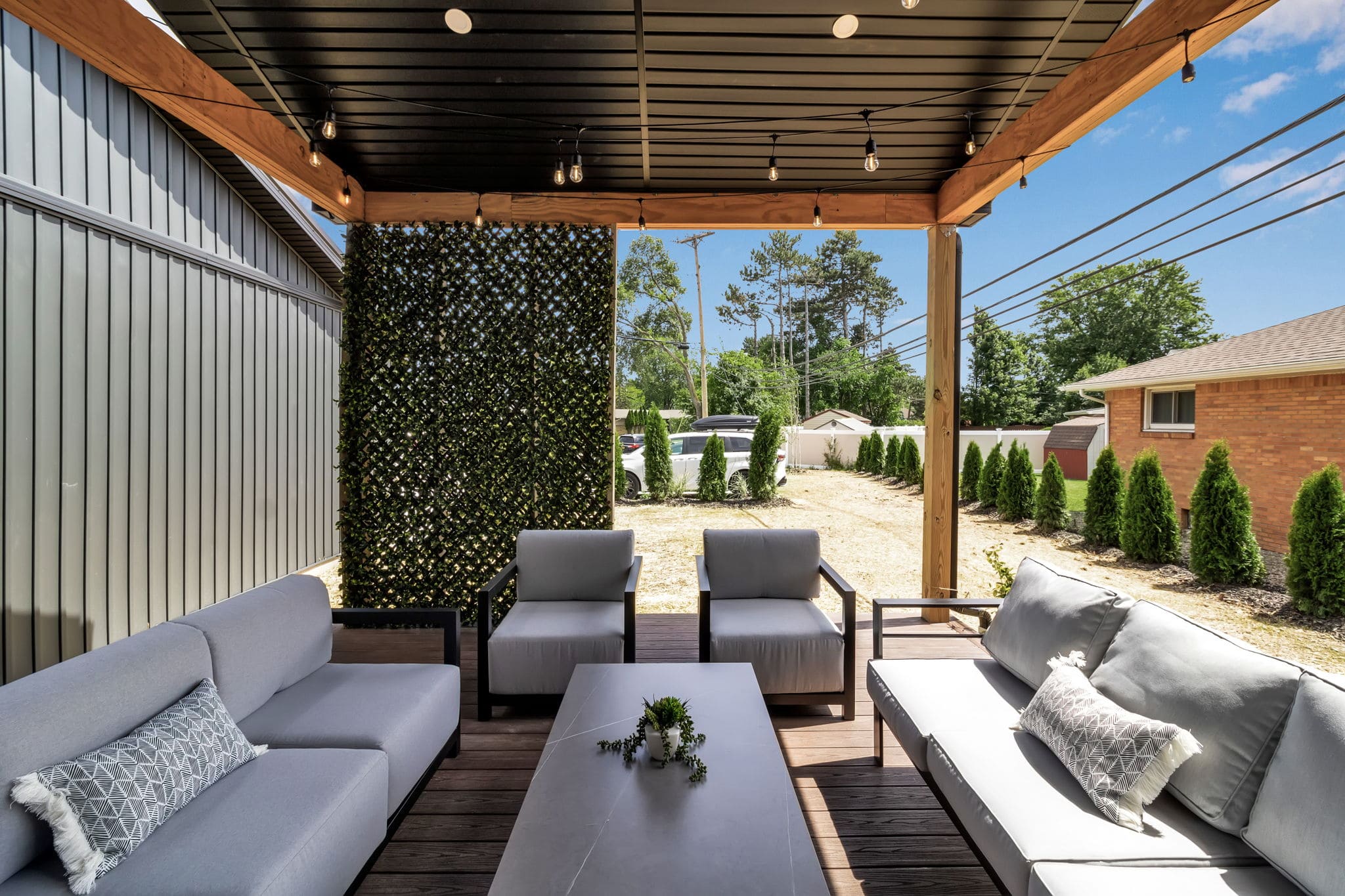 Private backyard and patio with outdoor seating.