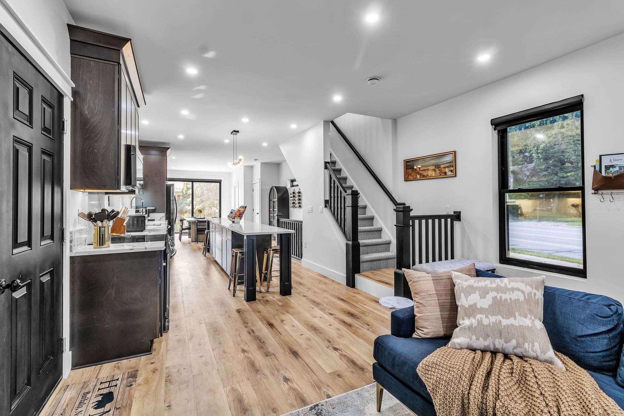 Looking for a unique, modern, centrally located stay in Western NY? Cornerhouse716 is just one minute from I-290, making it easy to get anywhere fast! Cornerhouse716 is a 2250 sq ft “city tall” home completed in 2024, designed for comfort, style, and convenience.